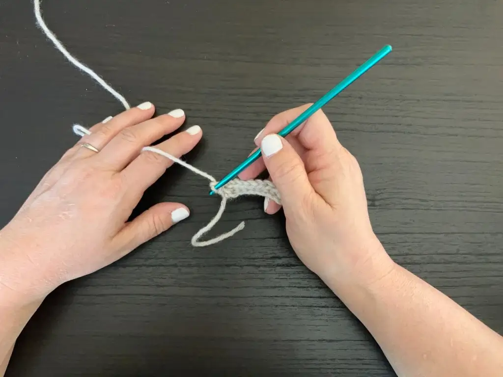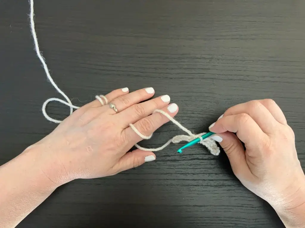 To make another row, make three chain stitches and turn your work. (The chains at the beginning of a new row are called the “turning chain“.)